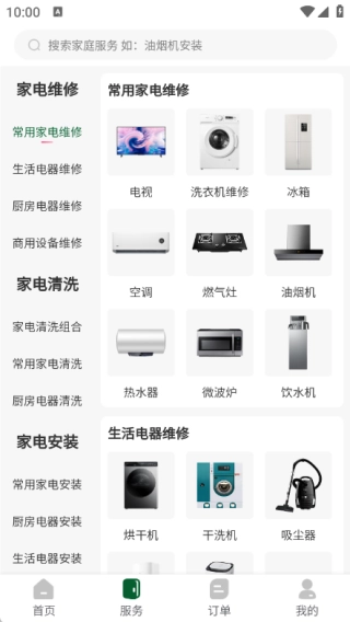 2、服务页面划分了家电维修、家电清洗、家电安装等不同服务版块,便于用户了解各类服务的相关资源。