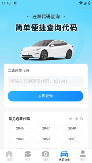 4、在代码查询页面输入交通违章代码后,点击立即查询按钮就能完成查询操作。
