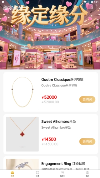 缘定缘分是一款功能全面又高效的购物平台,汇聚了丰富的在线热门好货,专注于为用户提供优质的线上购物体验。平台上每件商品都配有详细的介绍,是一款超可靠且优惠多多的购物软件。新产品更新速度快,海量精选好物供你随心选购,还有丰富的网购活动,一键领取优惠券即可随时开启购物之旅。