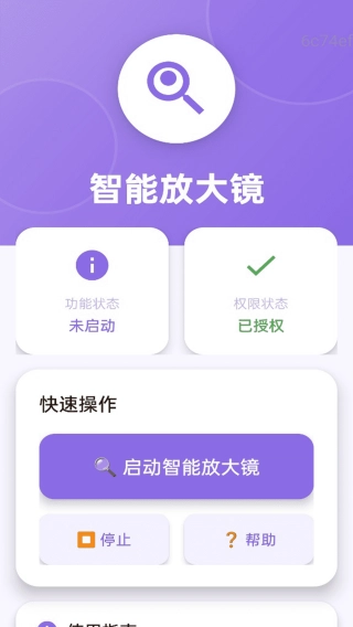 1、启动后能够实时放大手机屏幕上的显示内容,或是放大镜头所对准物体的细节,该功能支持权限管理,以此保障功能可以正常运行。