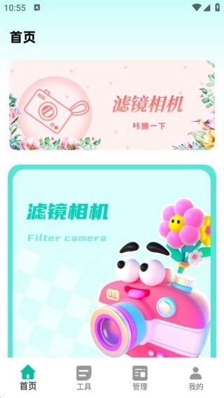 安装软件并进入后,首页支持直接开启滤镜相机进行拍照。