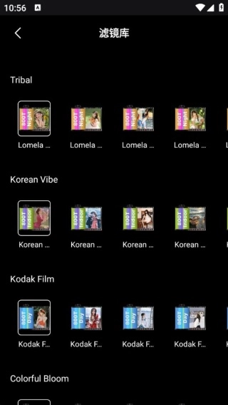 4、滤镜库配备了丰富多样的滤镜素材,所有素材都支持预览效果并可直接使用。