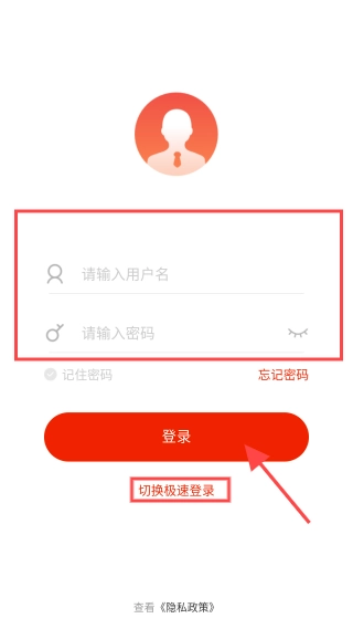 3、填写用户名和密码登录账号,可切换急速登录。
