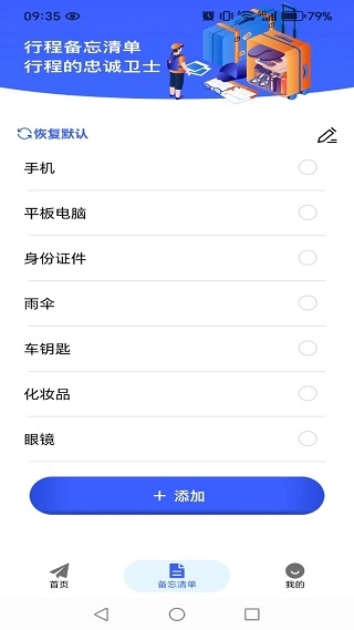 3、在备忘清单页面,我们能够依据你的计划,添加一些提醒信息。