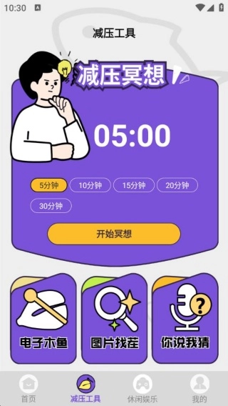 3、进入减压工具界面后,你可以随时进行减压冥想,还能畅玩电子木鱼和图片找茬等功能。