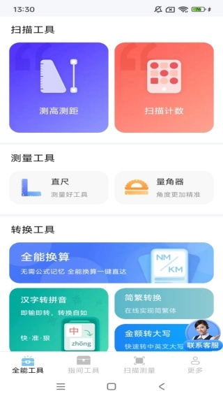 2、首页推送的功能十分丰富,涵盖高度测量、扫描计数、直尺测量以及量角器测量等多种实用功能。