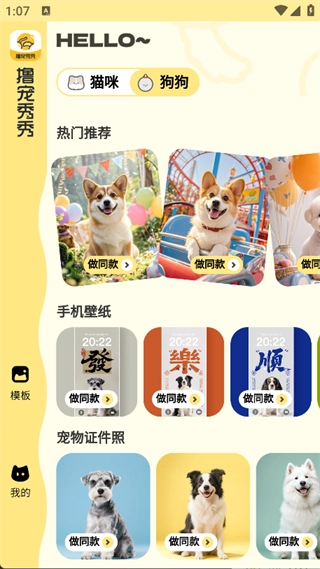 2. 主页面上能直接看到热门推荐、手机壁纸、宠物证件照等功能;