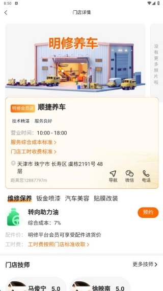 明修养车是一款专为车主打造,同步查询附近维修站点的养车服务软件,可以结合你的车辆使用情况,了解到适合的养护套餐,在线预定真的方便,一键查看每个养护套餐的收费,合适就可以提前预约养车时间,避免等待,让我们非常放心。
