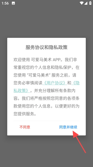 1、安装后,阅读同意“服务协议和隐私政策”。