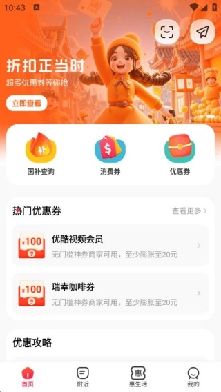 1、涵盖电商平台优惠券、外卖红包、品牌折扣、城市消费券等多种优惠类型,同时包含视频、咖啡、出行、娱乐等多场景福利。