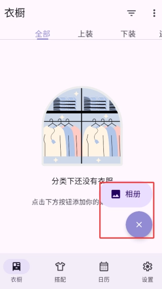2、进入到衣橱界面,通过导入相册里的衣物照片来进行整理,查看十分的简单。