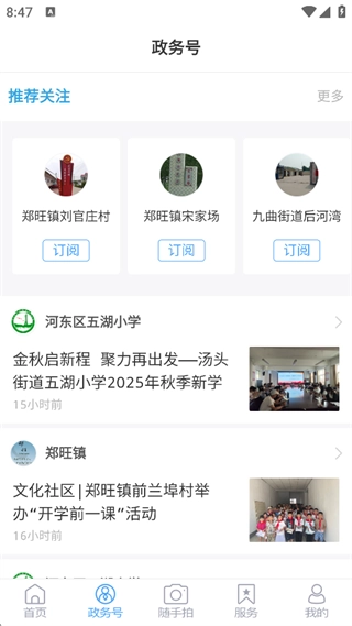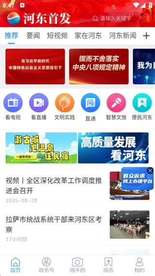 2. 在“首页”可看到关于河东的新闻、资讯以及板块快捷通道;