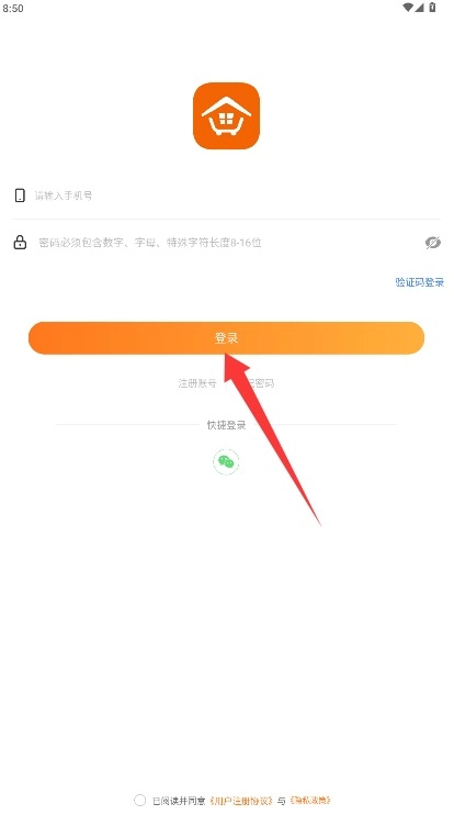 4、回到登录页面,输入手机号与密码,勾选同意相关协议后,点击登录按钮即可进入应用。