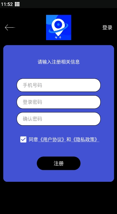 1、接着打开北斗智寻,在登录界面输入手机号码,获取验证码后完成注册与登录操作。
