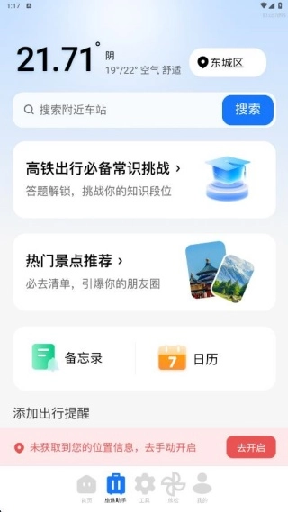 3、旅途助手页面展示了热门景点推荐,方便我们去打卡有趣地方,还能添加出行提醒。