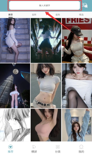 2、在顶部搜索框,输入关键词美女并搜索。