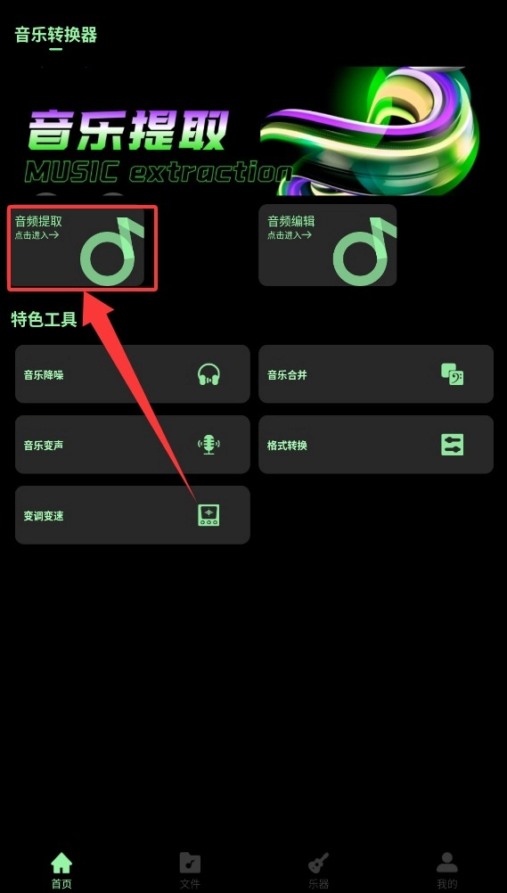 2、进入主界面后,在功能列表中选择音乐提取选项,进入音频提取专用操作界面。
