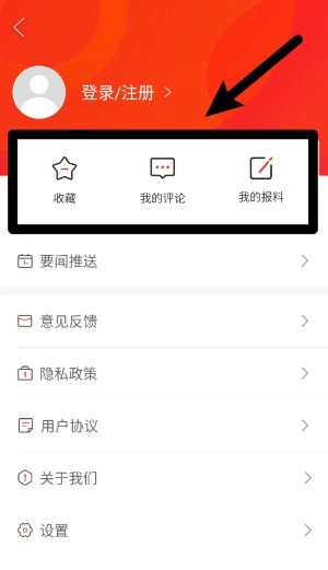 5、进入个人中心后,可查看我的收藏、评论和报料内容,同时还能进入设置、协议等其他功能模块。
