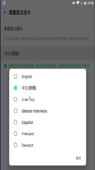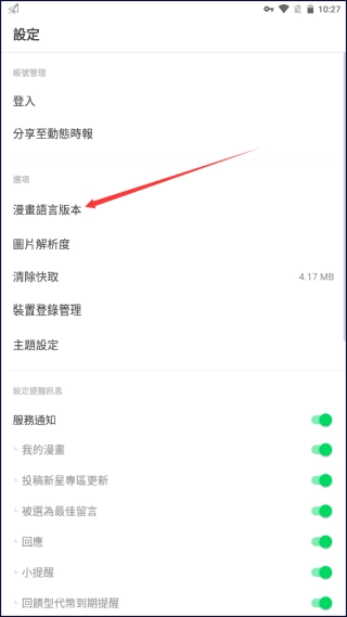 2. 点击漫画语言版本选项。