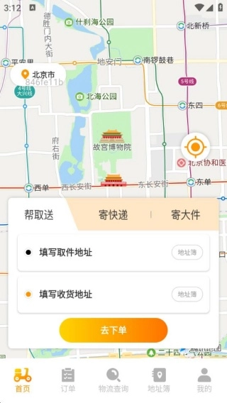 2、首页设有帮取送、寄快递、寄大件等选项,方便用户直接下单。