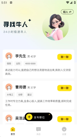 1、依托实时定位功能进行岗位推荐,精准捕捉周边热门工作机会,助力求职者提高求职效率。