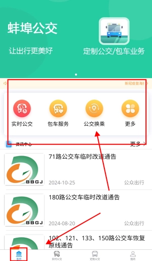 3、在首页中可以查看到实时公交、包车服务等信息。