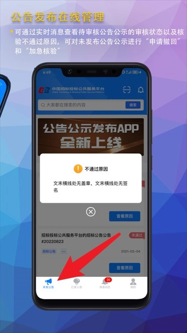 2、对公告状态进行实时跟踪,自动向用户提醒审核进度,确保用户能够随时掌握最新动态。