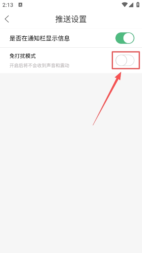 4、用户在“推送设置”页面就可以把这个免打扰按钮开启了。