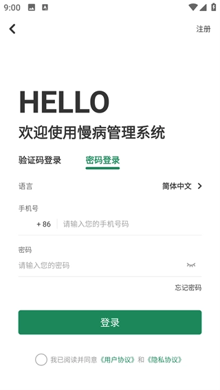 3、除了验证码还支持密码登录,输入登录手机号以及密码完成登录;