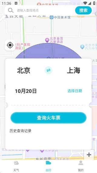 3、点击出行,就可以直接去进行火车票查询操作。