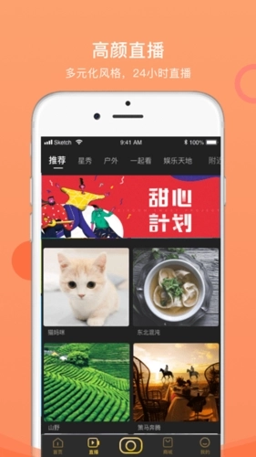 3、户外、颜值、美食、文化、娱乐等各类主播实时在线,陪您共度美好时光!