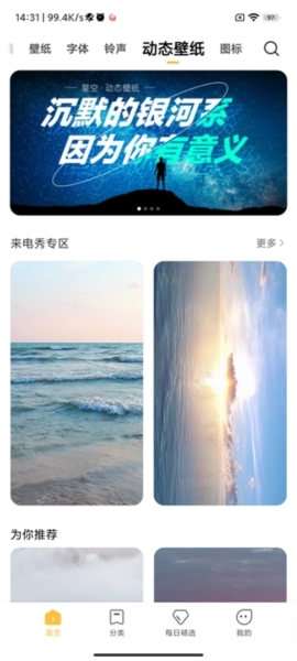 1、主界面设有首页、分类、每日精选和我的四大板块,各板块功能对应明确,操作便捷易用。