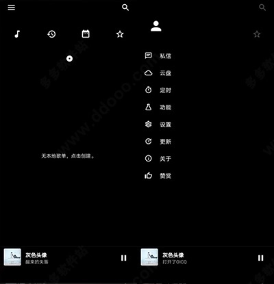 1、第一次打开倒带时,可能会让人有点摸不着头脑——除了一片黑色背景,看不到任何内容,既没有歌曲推荐,也没有歌单分类,完全不像是一个在线音乐播放器该有的样子!