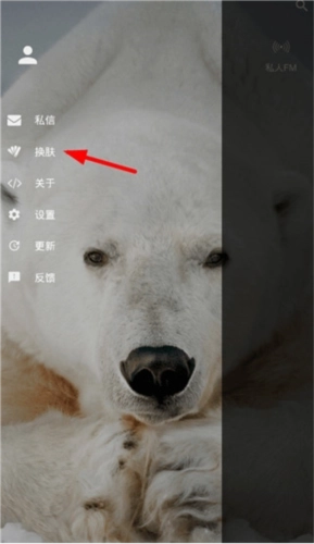 1、启动倒带音乐播放器,点击左上角的横线图标,接着选择“换肤”选项。