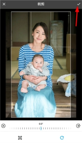 3、对图片尺寸进行裁剪操作,完成后,点击右上角的“勾”形按钮。