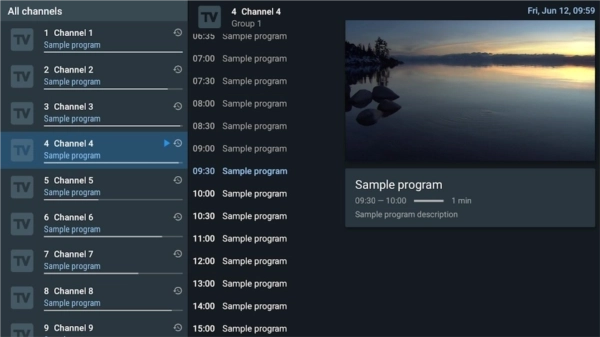 TiviMate最新版是一款专门为影视爱好者量身打造的手机影视盒子软件。通过这款软件,你可以在电视机上享受更多电视直播节目,不管是央视频道,还是卫视频道,你可以自己添加直播源,一键添加就可以看到各种直播频道。除此之外,你还可以随意切换超清画质,没有任何广告,智能解码方式让你可以享受流畅的播放体验,快来试试吧!