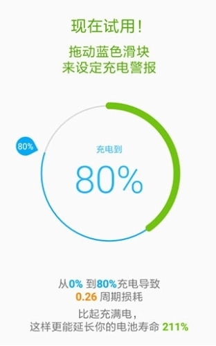 电池的寿命是有限的。每次给装置充电,都会损耗电池,降低电池的总容量。科学研究表明,只将手机充到80%,能将电池寿命延长到200%。