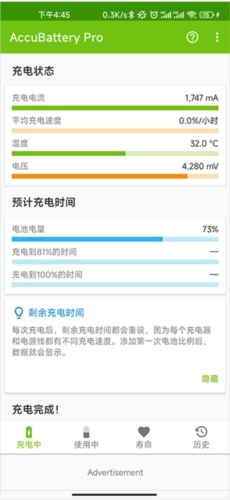 用AccuBattery为手机找到最快的充电器和USB连接线。通过充电电流(以毫安为单位)来发现,查看手机显示屏开或关时的充电速度。