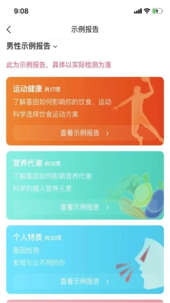 示例报告:展示健康检测产品的示例报告。