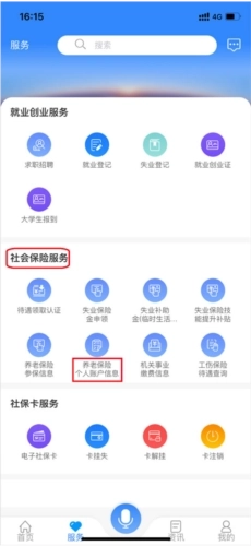 2、在「社会保险服务」中即可看到养老保险个人账户信息,点击即可查看到没到账。