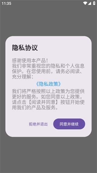 阅读用户隐私政策后,点击“同意并继续”按钮,即可进入软件。