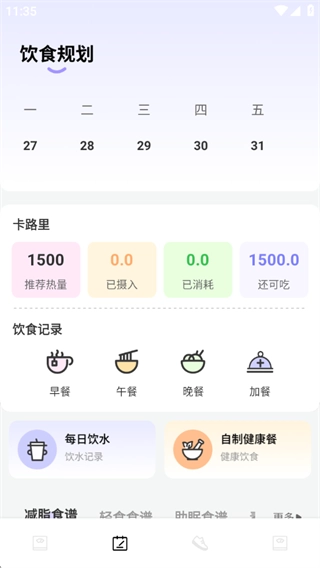 3、借助饮食规划功能,记录日常饮食,了解热量摄入状况,获取健康食谱推荐。