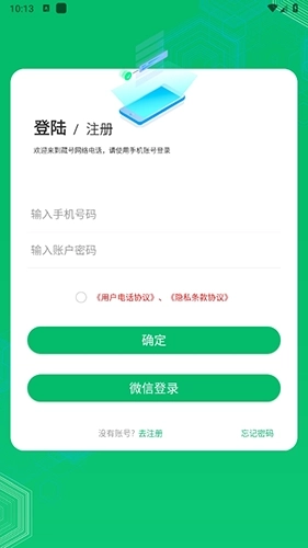 1、在本站藏号网络电话平台,通过手机号完成注册登录操作后进入软件首页;