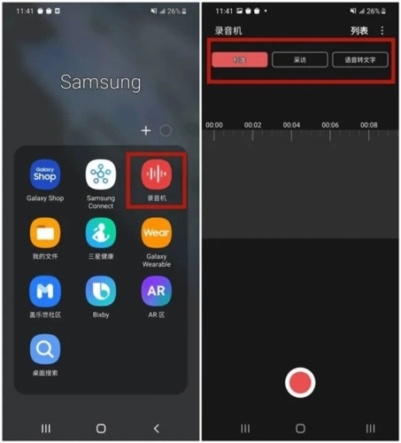在三星录音机应用中,用户能够借助顶部与底部的两个麦克风来采集声音,同时呈现双波形,让录音效果更清晰、更具生动感。另外,该应用还具备语音转文字的功能,用户可将录制的内容直接转换成文字,便于日常记录备忘和分享。而通过的音频播放器,用户能轻松调整播放速度、跳过片段、设置重复模式,进一步优化使用体验。