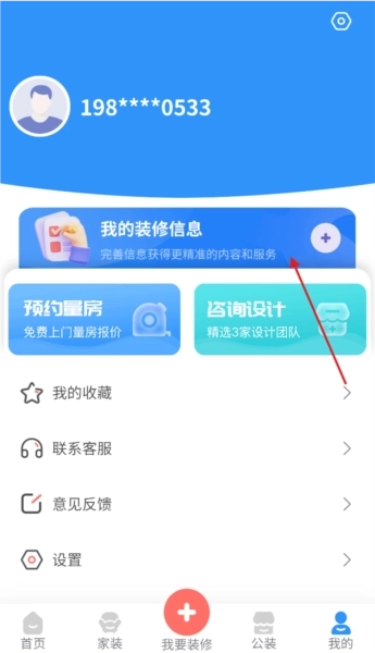 2、账号注册:打开,通过手机号完成注册登录,完善个人装修需求信息。