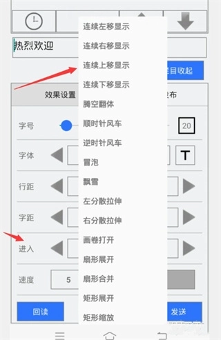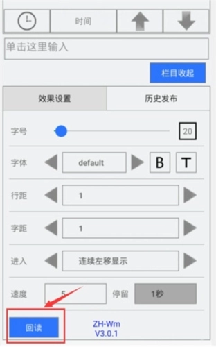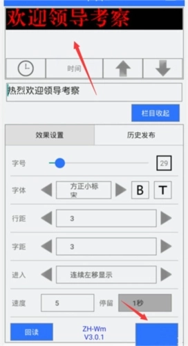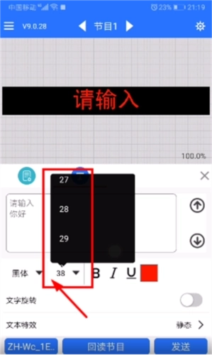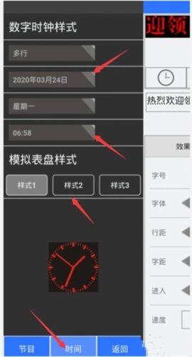 5、在【栏目】中输入LED显示的文字,再对文字效果进行设置。