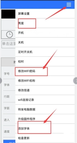 2、通过选项菜单能够调整【亮度】【wifi密码】以及【字体】这类设置。
