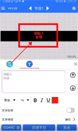 1、打开led魔宝,新建一个节目,接着在文本选项里找到文本特效并将其设置为静态模式。