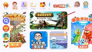 1、在应用首页的展示区域里找到【探秘恐龙世界】这门课程的卡片,点击这张卡片后,就能进入到对应的课程详情页面去查看相关信息。