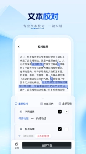 1、智能文本校对:笔墨公文借助先进的自然语言处理技术,能够精准识别并修正文本里的各类问题,无论是错别字、语法小毛病,还是句式上的不妥之处,都能一一处理,从而保证文稿的语言规范严谨,表达清晰准确。